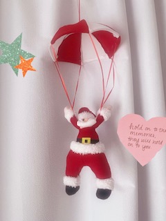 クリスマスツリーの横に飾っているパラシュートサンタ♡